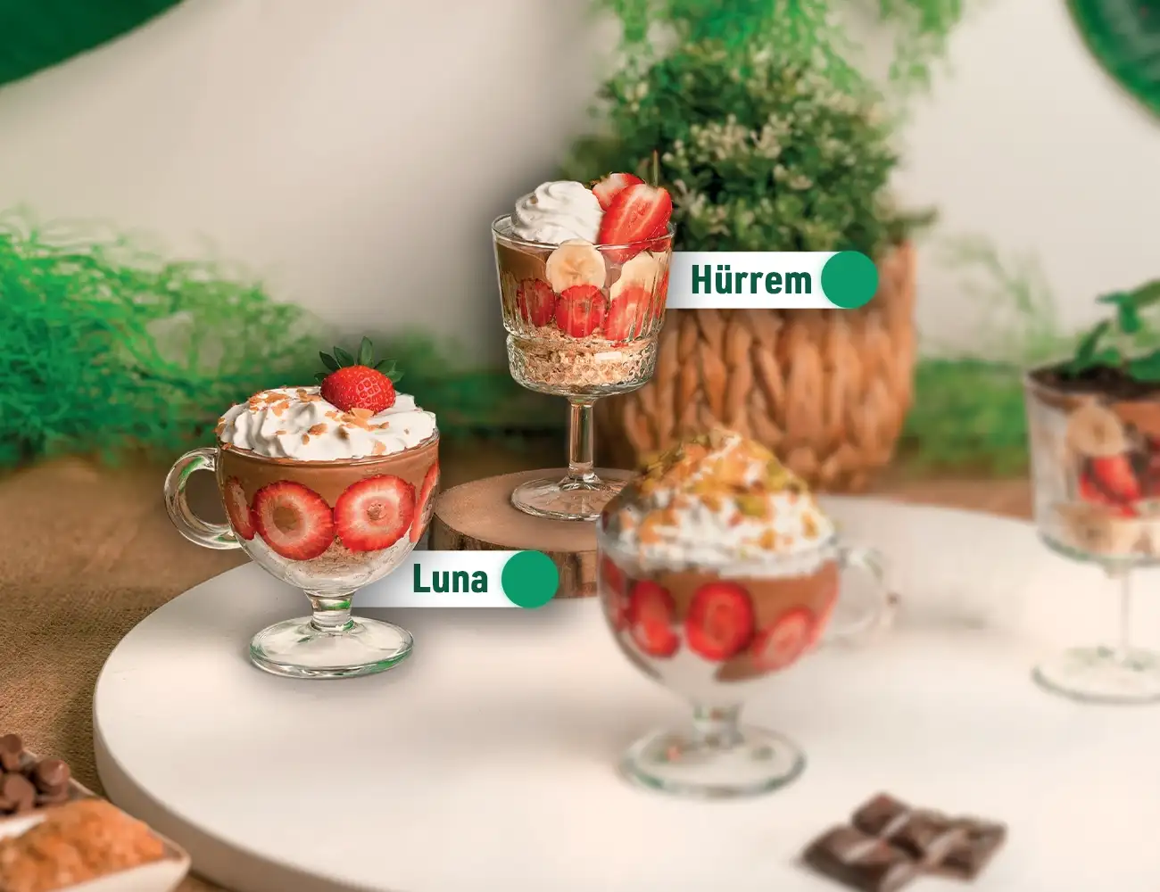 مۆز، فراوله، ئۆریۆ، شوکولاتەی بەلجیکی، کرێمی شانتی، نەعنا